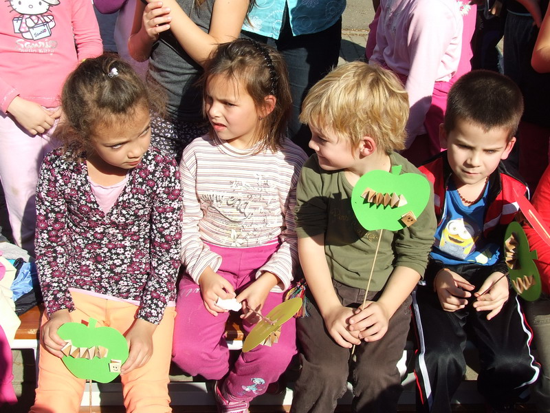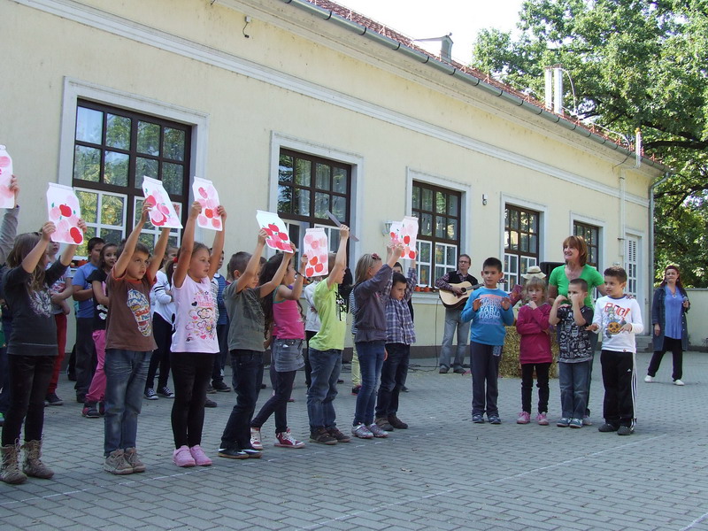 Hagyományainkhoz híven egy szép őszi péntek délután ebben a tanévben is felavattuk az első osztályosainkat, a kisfecskéinket. A fecskeavatót összekapcsoltuk a gyümölcsnappal, amely most az alma jegyében telt. Minden osztály lelkesen készült erre a délutánra, de főleg a negyedikesek és az elsősök. Az elsősök játékos, dalos bemutatkozását énekes, táncos vigadalom követte. A hangulat fokozásában a negyedikeseknek, Adrika néninek és Gyula bácsinak jutott a főszerep. A hozzánk ismét ellátogató óvodások is nagyon jól érezték magukat. Természetesen az ajándékozás sem maradhatott el. Az elsősök fecskés nyakláncot, az ovisok alma síkbábot kaptak. A felfokozott hangulatú délutánt mindenki a saját osztályában gyümölcs- és süteményevéssel zárta.
