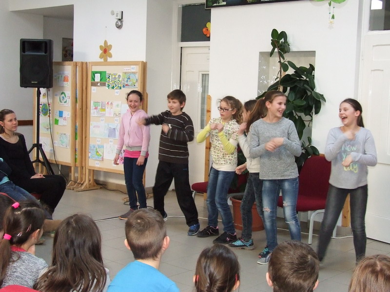 Március 18-án délután Lola néni irányításával az idegen nyelvet tanuló gyerekek bemutathatták egymásnak játékos formában, hogy mit is tudnak már angolból illetve németből. Láthattunk meséket, tréfás jeleneteket, verseket, dalokat, táncokat. Nagyon jól éreztük magunkat. Köszönjük a nyelvszakos kollégáknak, hogy felkészítették tanulóinkat erre a vidám délutánra.