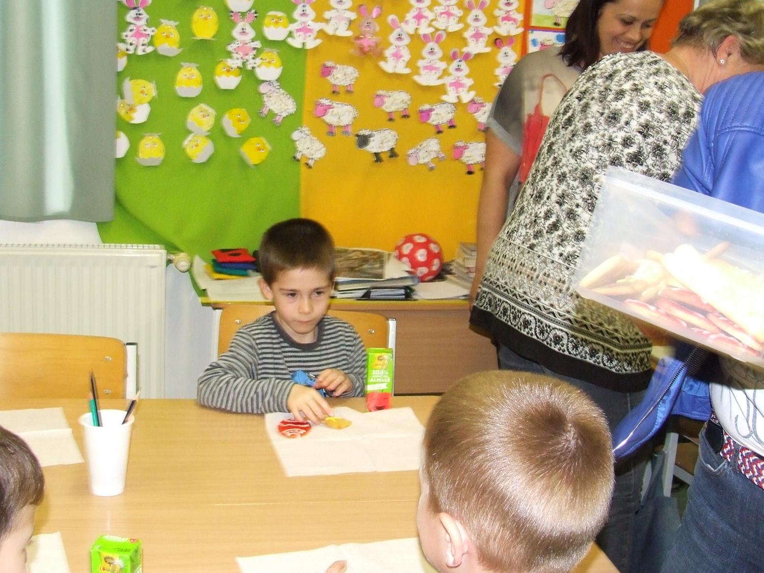 "Suliváró" programsorozatunk utolsó foglalkozása április 11 – én került megrendezésre. Ezen a délutánon a nagycsoportos ovisok kipróbálhatták, milyen iskolásnak lenni. Beülhettek a padokba és a tanító nénik irányításával „igazi” tanítási órán vehettek részt. Bepillanthattak a számolás, az írás, a környezetismeret és a mozgás rejtelmeibe. Végül az ajándék sem maradhatott el: húsvéti mézeskalács, labda és a pecsét a kis füzetecskéből. A gyerekek nagyon ügyesek és lelkesek voltak.
